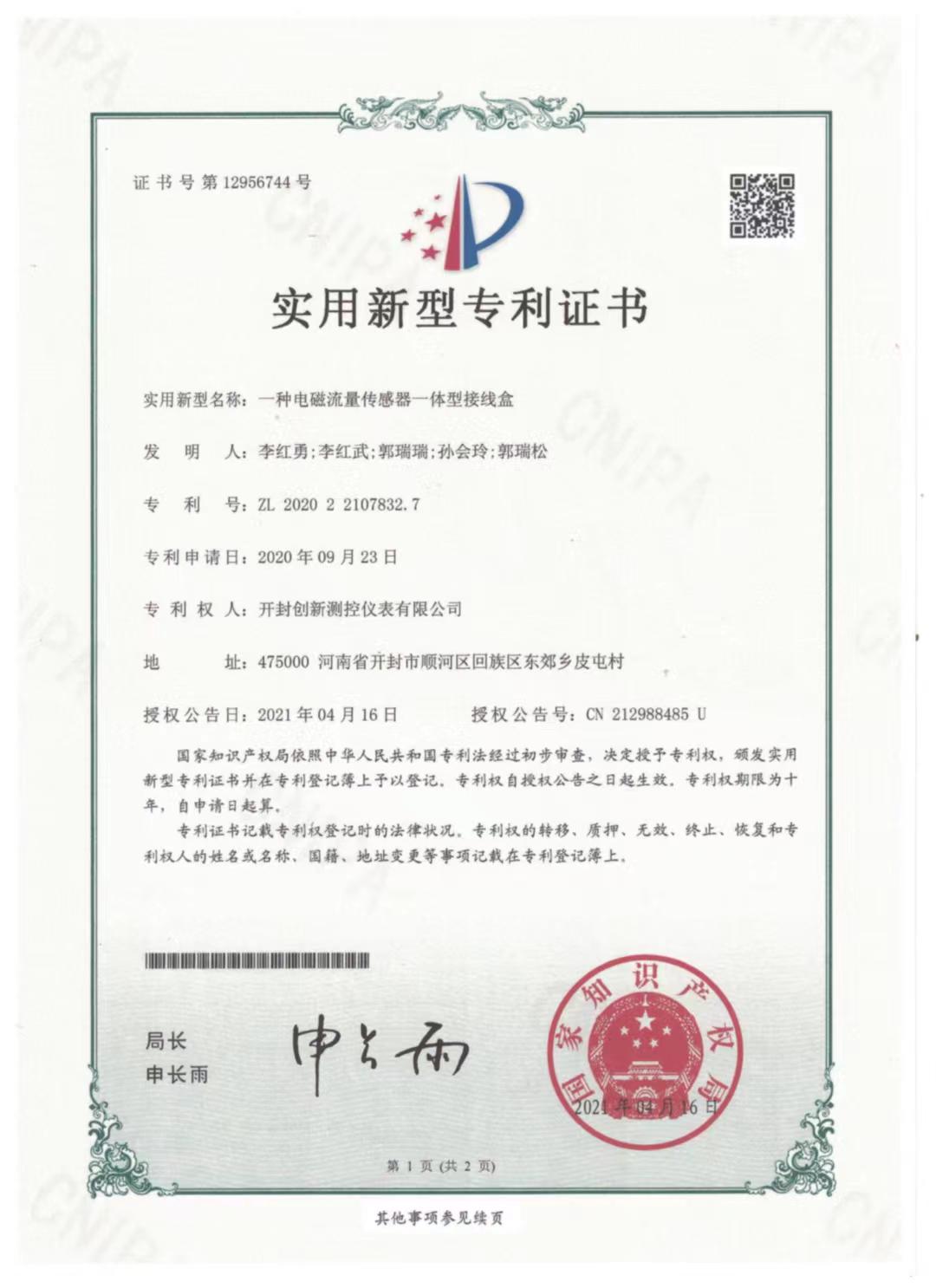 電磁流量計(jì)防爆合格證
